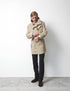 The pattern and size calculation app takes into account that this is an over-suit trench coat, providing more space in the shoulder area. The length of the jacket has been calculated to be longer than a suit jacket.