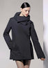 The TWIGGY jacket remains elegant and chic even in bad weather. Highly effective at protecting against rain, wind, snow, and extreme cold-even at subzero temperatures-its sleek silhouette is inspired by the 1960s. Yet its modernity surprises; it is truly timeless! Featuring minimalist geometric lines with a slight Japanese touch, a respect for volume, and technical craftsmanship, the jacket has been carefully made: whether worn open or fully closed, with adjustable sleeves and high-quality snap buttons. The Twiggy can be casually draped over the shoulders with a crossbody bag or carefully fitted to the body. Its large collar invites endless styling possibilities. There are countless ways to wear the TWIGGY. Great attention has been paid to every detail. The Twiggy is perfectly waterproof and breathable. It also includes internal wallet pockets on each inner flap. The brand’s signature mittens are comfortable and retractable. Its timeless design and uncompromising quality lie at the heart of our sustainability promise. Those who wear it can attest to this.